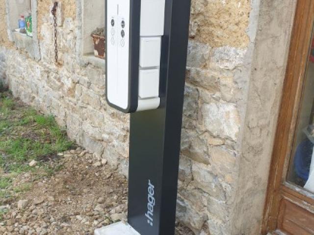 Nous avons choisi chez ce client la borne de recharge Hager Witty qui associe robustesse et esthétisme.